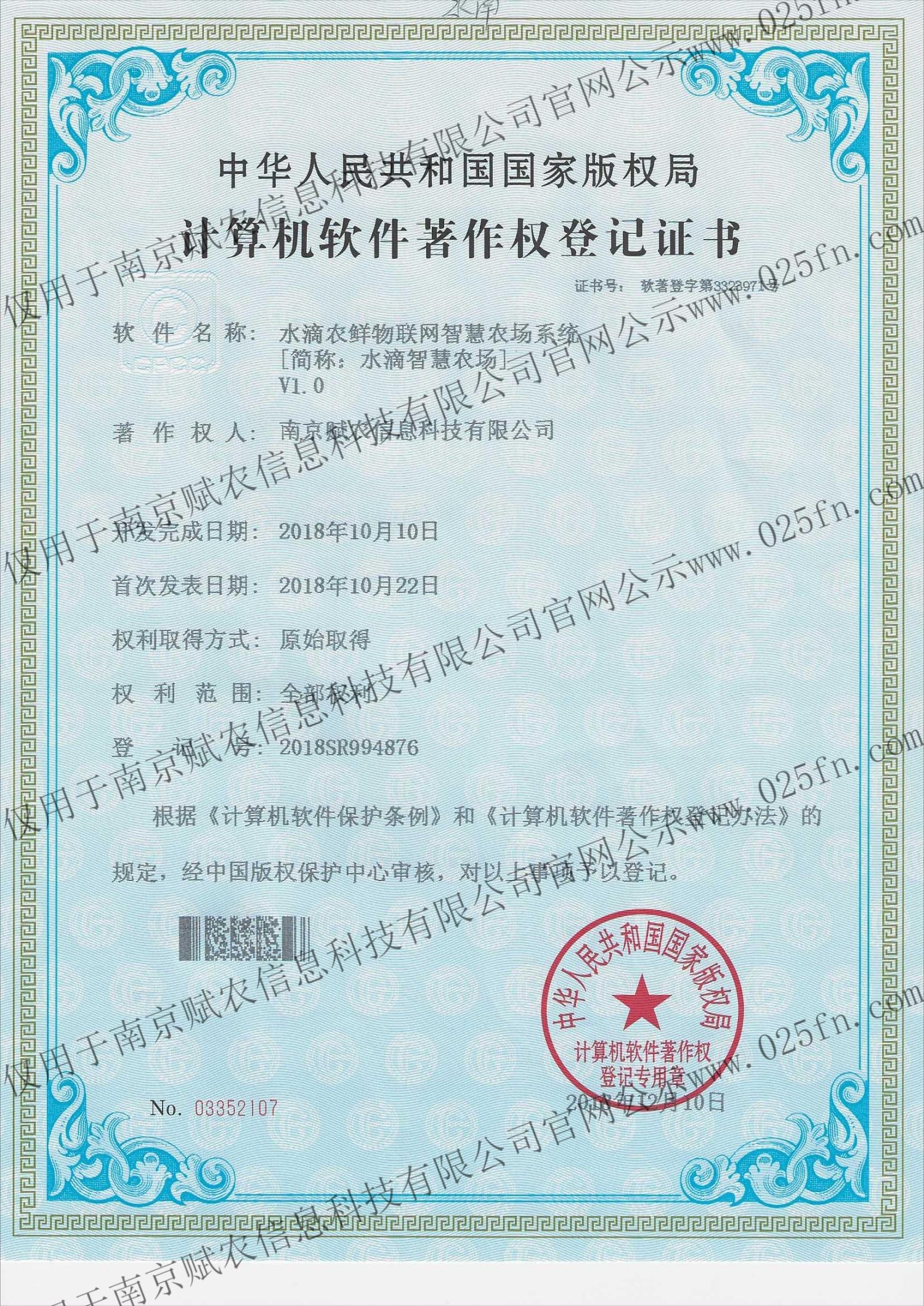 水滴农鲜智慧农场系统V1.0软著