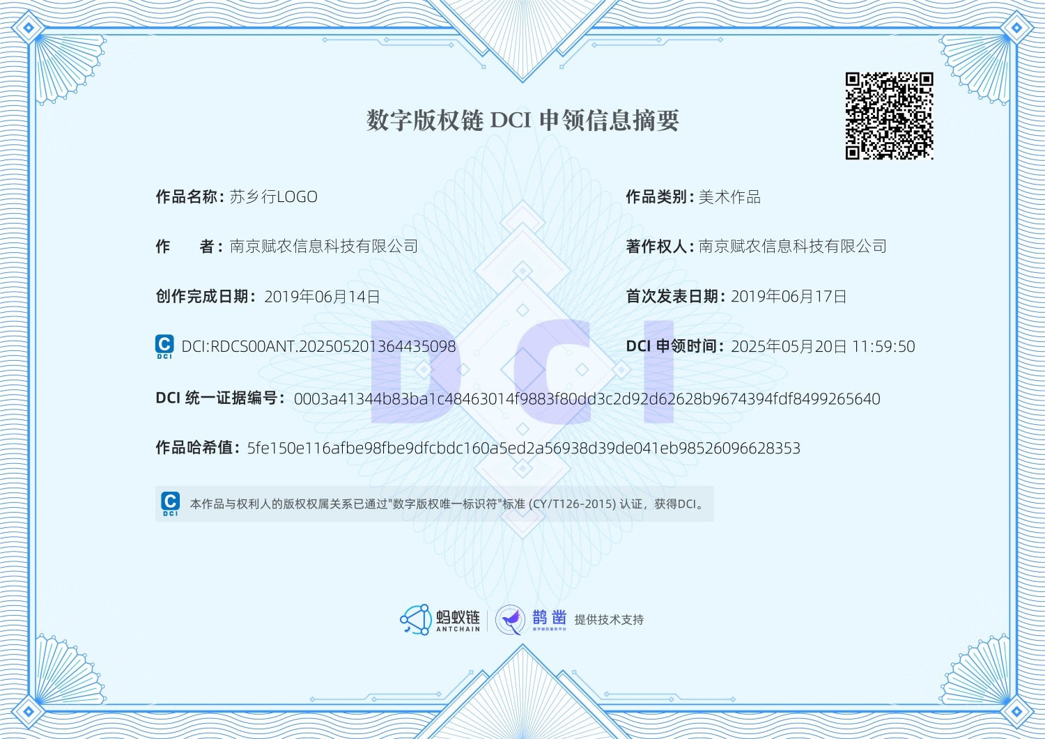 数字版权链DCI证书-苏乡行品牌LOGO标识