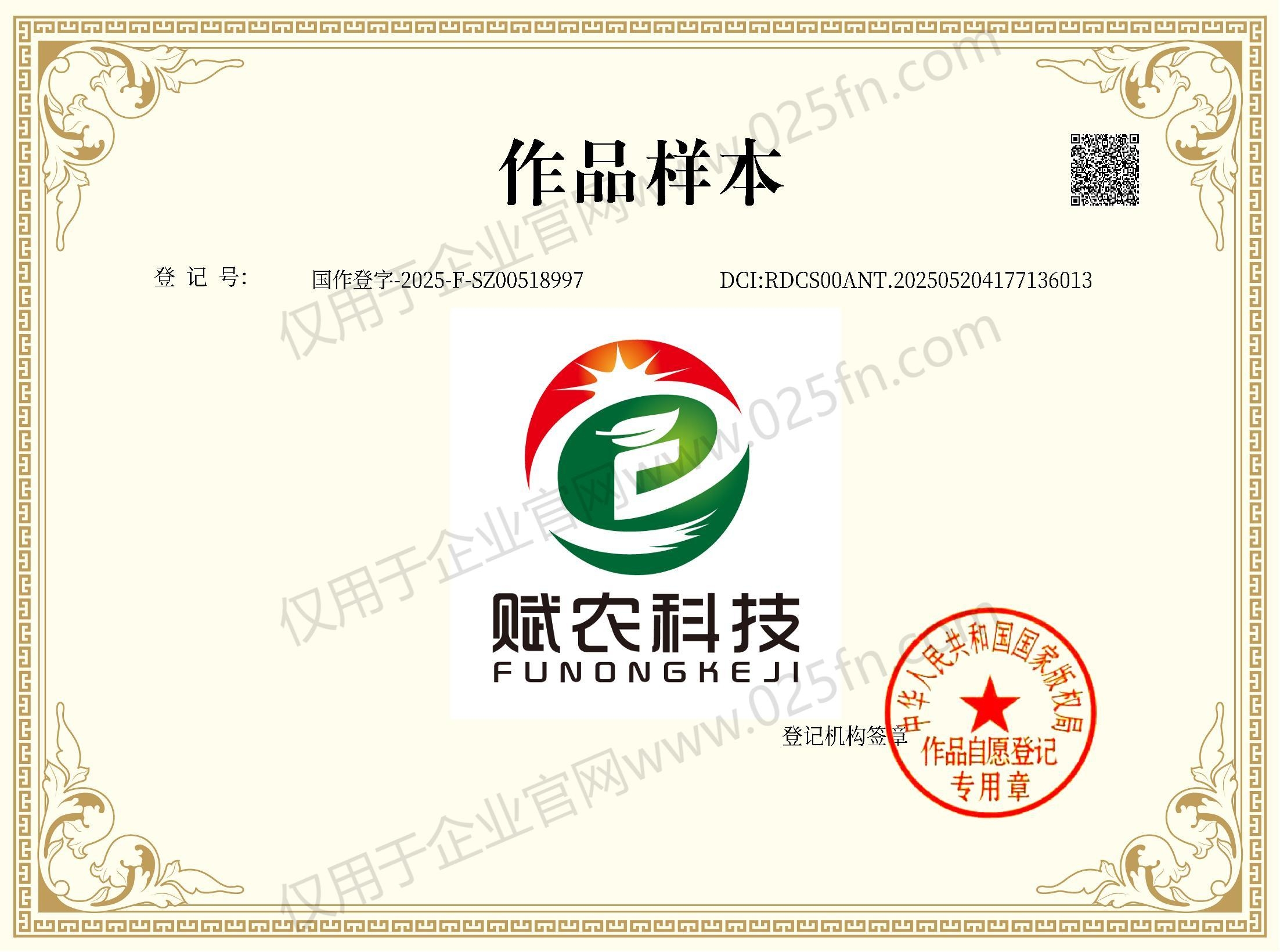 赋农科技品牌LOGO版权局认证