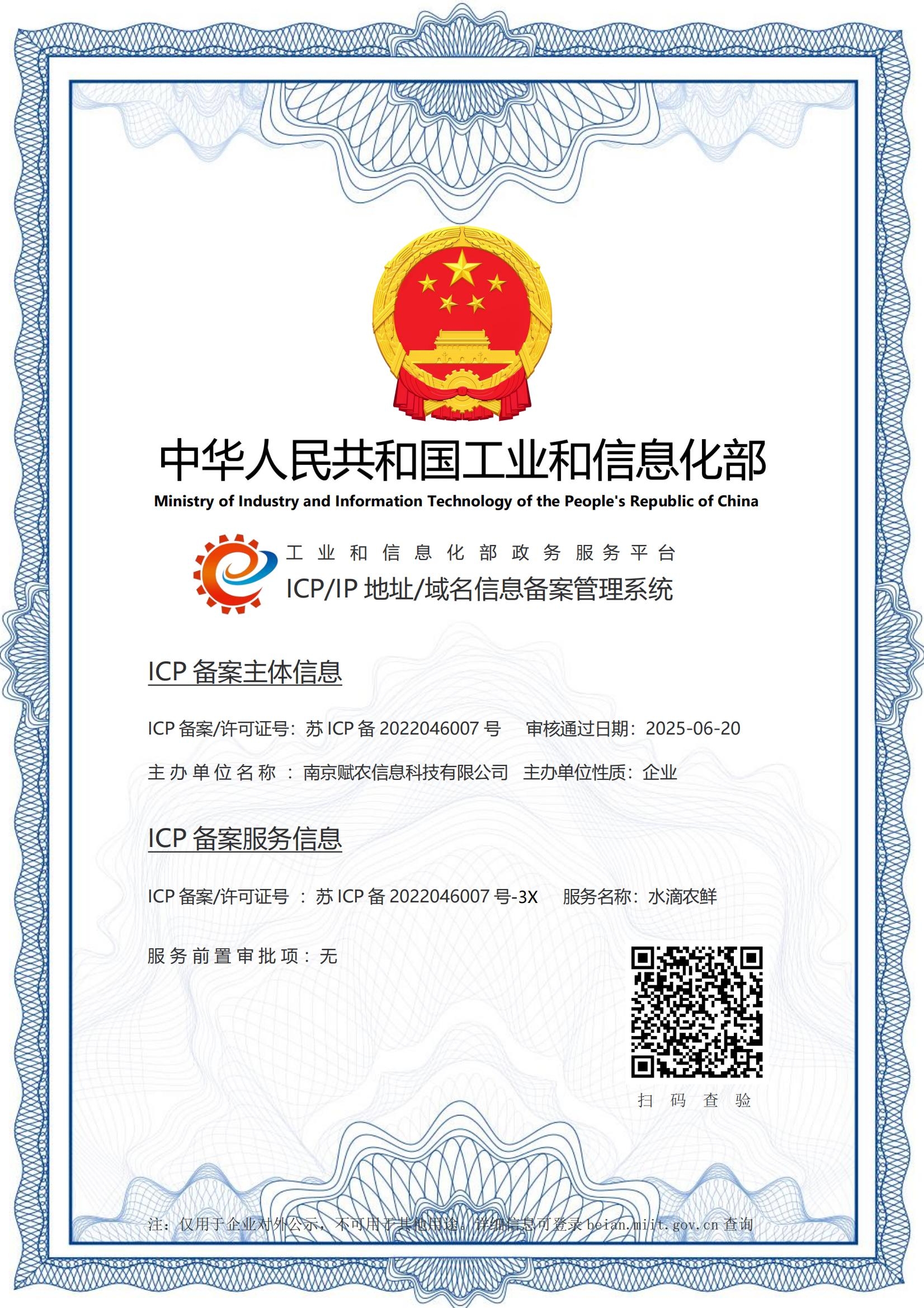 赋农工信部备案-水滴农鲜小程序
